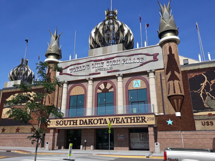By the way – Mitchell is home of the worlds only corn-palace. I spent a visit and took the whole tour. That includes a simulated ride on a harvester. It gave kicks! And a nice feature: in the cafeteria all offered foods and beverages contain corn-syrup π